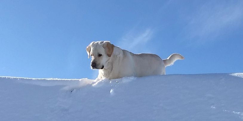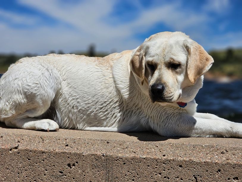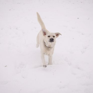 Shimmer has the sweetest personality ever, and LOVES retrieving! She is our smaller, quiet girl, is only about 55lbs (perfect travel size!), and is a more shy girl. Shimmer loves going on truck/car rides, hiking, and cuddling. While she is a more shy girl, she just adores people! She may be a bit timid approaching someone/something new, but as soon as she gets a pat, she is ready to snuggle!