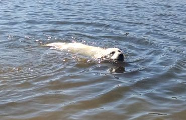Another time we were at Curt Gowdy. We had been playing fetch with a stick and I threw it way out into the lake. Steele lost sight of the little tiny foot-long stick we had thrown, and instead came back with a 5 foot branch! He brought it out of the water, dragging it the entire way, just as proud as can be!!
