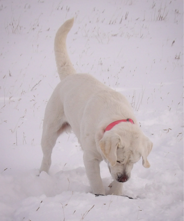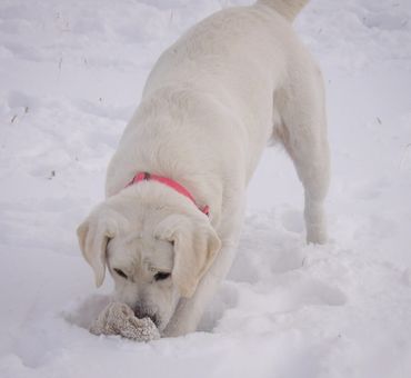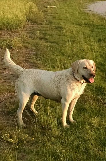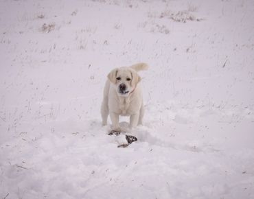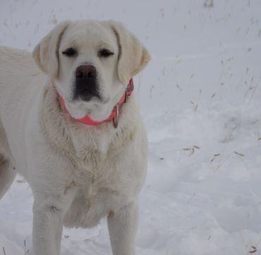 Crown is the classic English Lab. She has a broad head, deep barrel chest, and a perfect otter tail! Her eyes express so much intelligence and emotion! She has a natural instinct to retrieve, and absolutely LOVES to please!