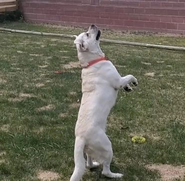 Layne became my best friend so quickly! She has the sweetest personality! She is the perfect mixture of playful and hyper, with laid back and collected! With a gorgeous block head, and such a deep barrel chest, she is gorgeous!!! Her eyes are soft and gentle, and highly intelligent! Layne is happily residing with her forever family in Big Horn, WY.