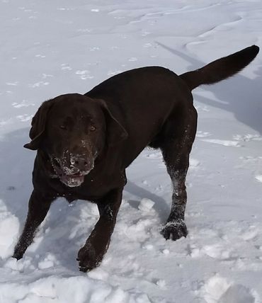 We are proud to say our gorgeous chocolate boy Steele is retired! He is absolutely amazing, and we know he is bringing his new family just as much joy as he has brought us! Don't let his age fool you, this old boy still acts like a pup! Steele absolutely LOVES people and playing❤️ even at his age, he still acts like a puppy! And below are some of his favorite things to do!